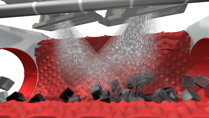 In den Anlagen kommen Guss, Stahl, Korund, Glas und mehr zum Einsatz. Diese werden mittels Turbine oder Druckluft beschleunigt und treffen mit hoher Geschwindigkeit am Werkstück auf. Dadurch raut sich die Oberfläche auf. Das Strahlen dient der Reinigung, dem Aufrauen, Entrosten oder Entzundern, Mattieren, dem Verdichten der Oberfläche oder der Filterentgratung.